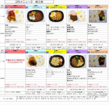 2月の献立表